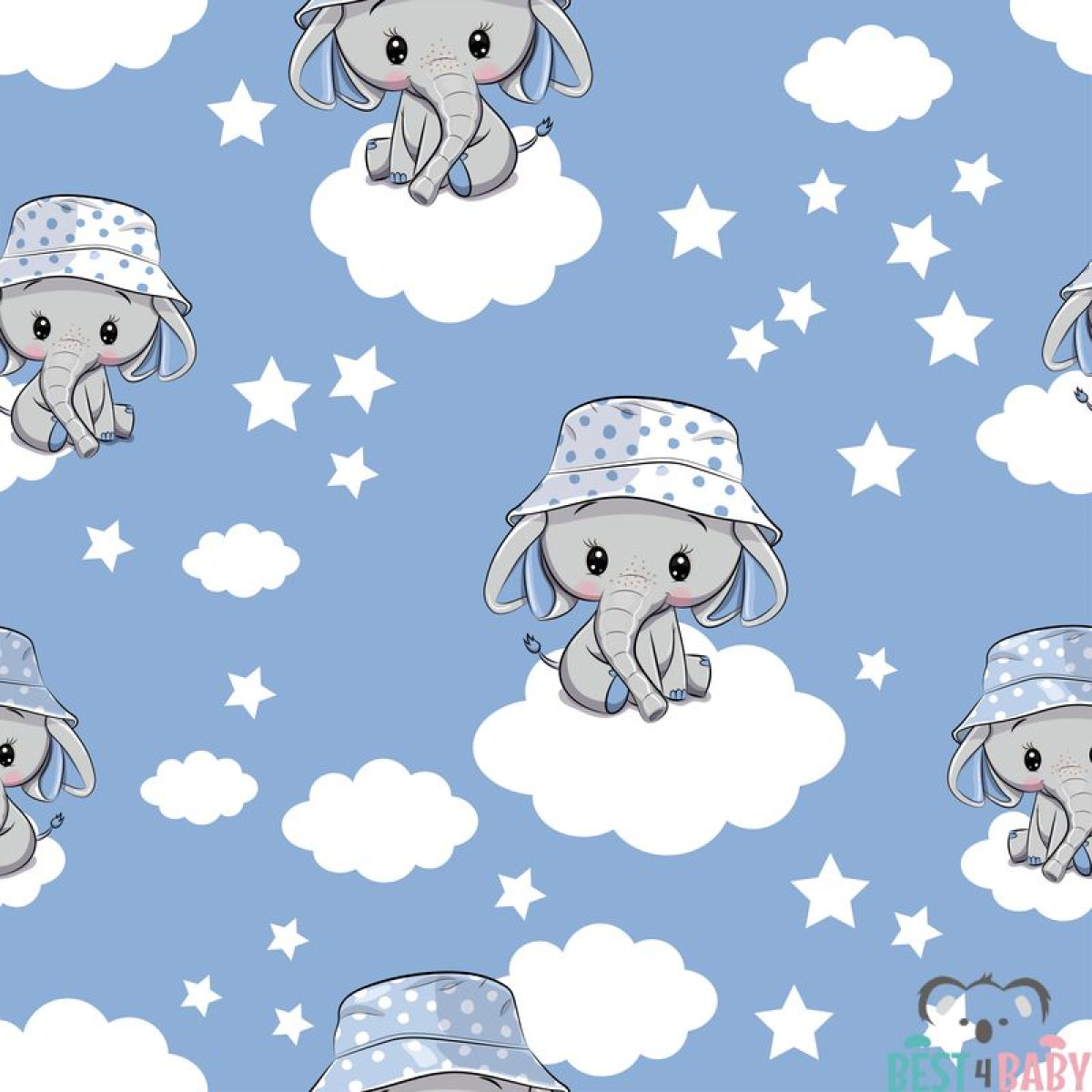BT-20B babaszoba tapéta, kék elefánt pöttyös sapkában gyerektapéta