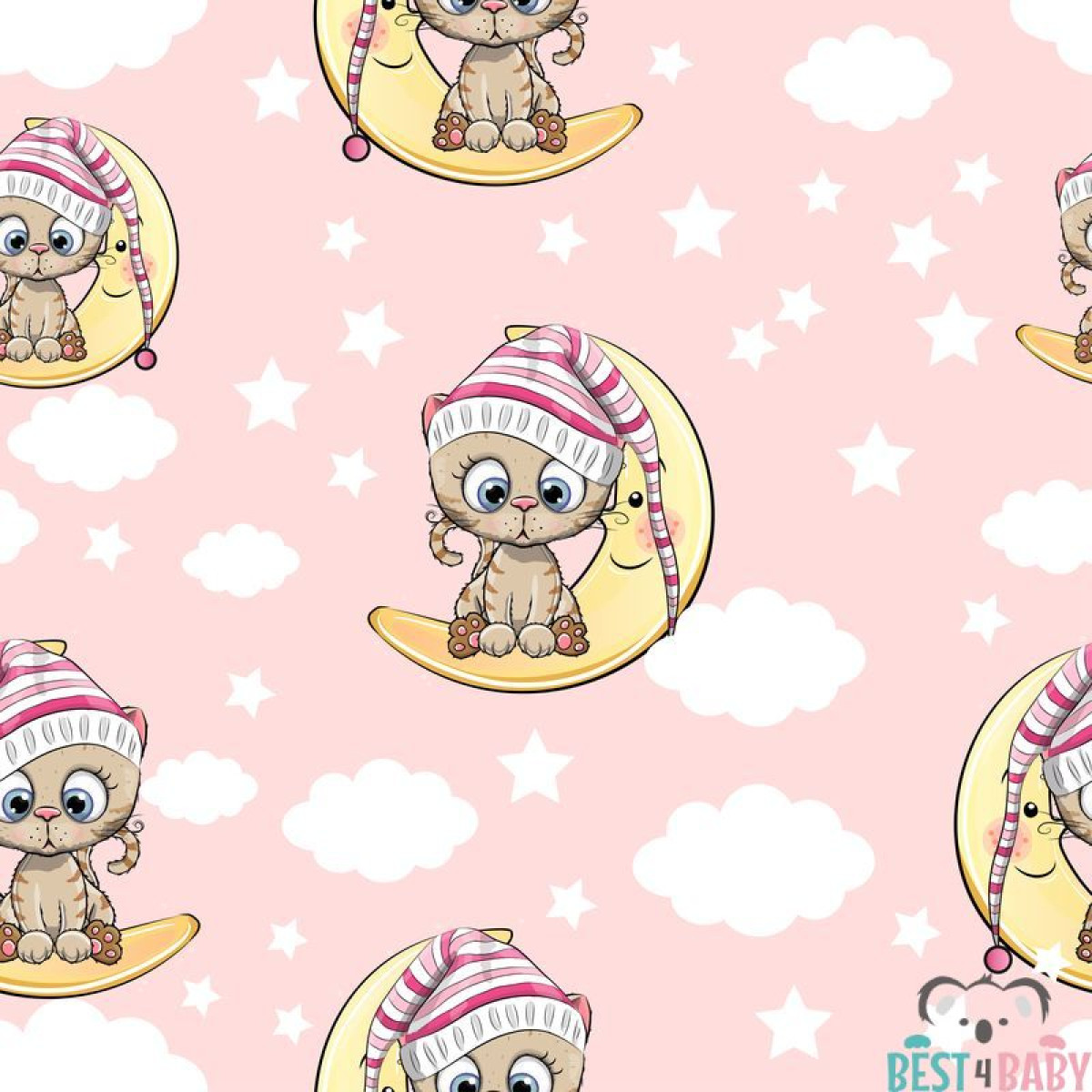 BT-22A babaszoba tapéta, rózsaszín felhős, cica hálósapkában