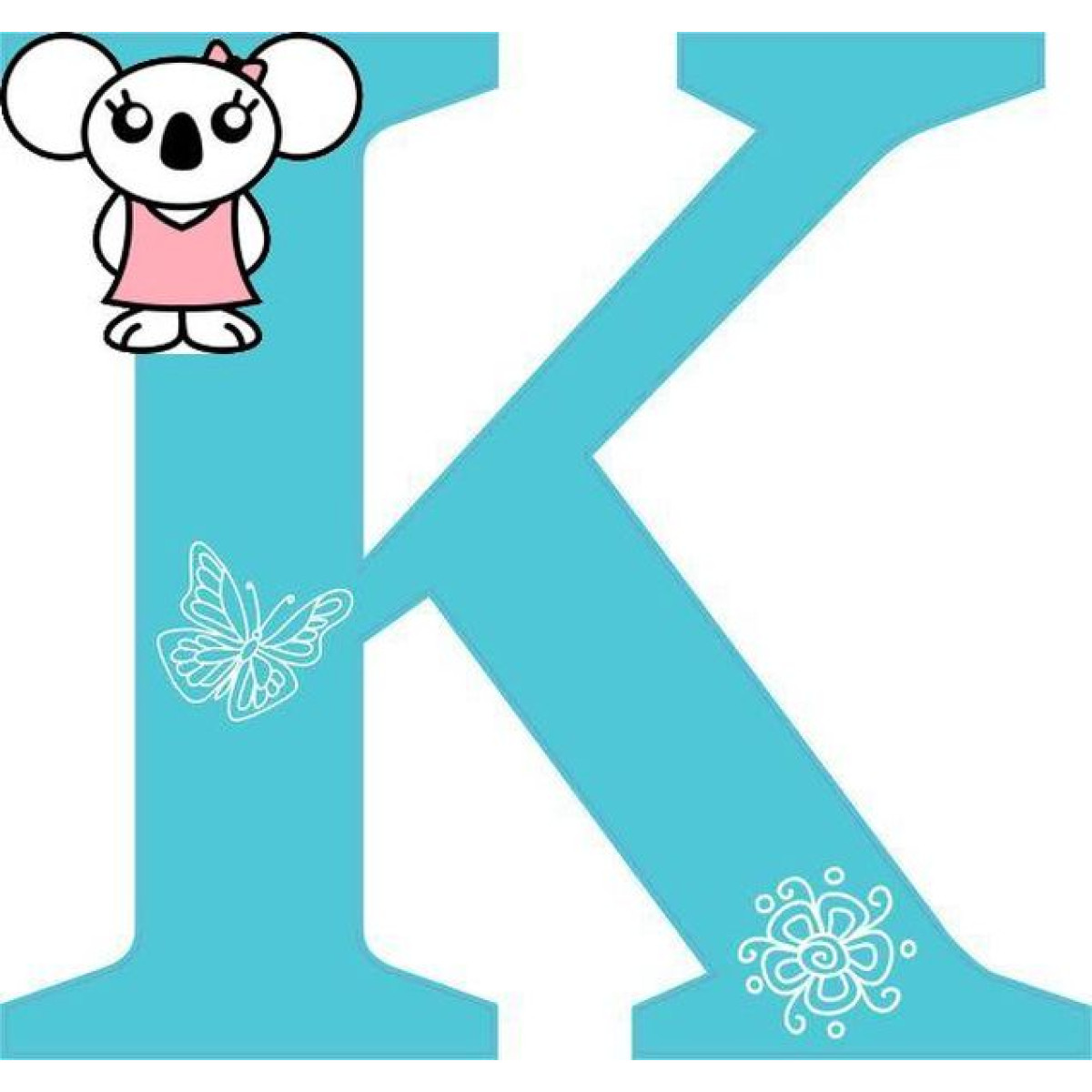 "K" betű falmatrica babaszobába, Abécé gyerek neves matrica, türkiz
