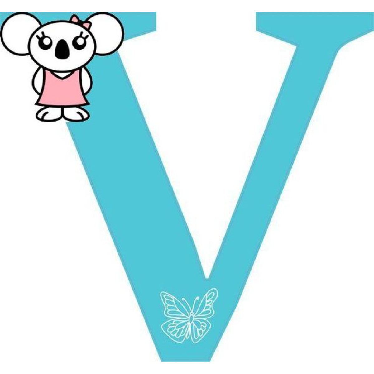 "V" betű falmatrica babaszobába, Abécé gyerek neves matrica, türkiz