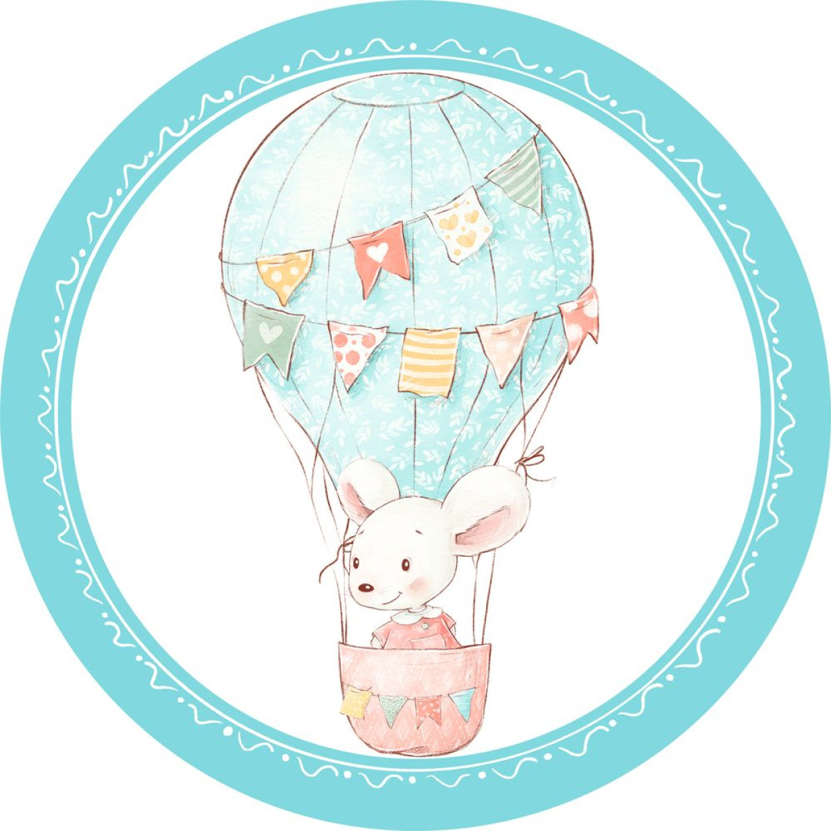 Kör alakú magyar falmatrica, egér, hőlégballonban. Körbevágva.