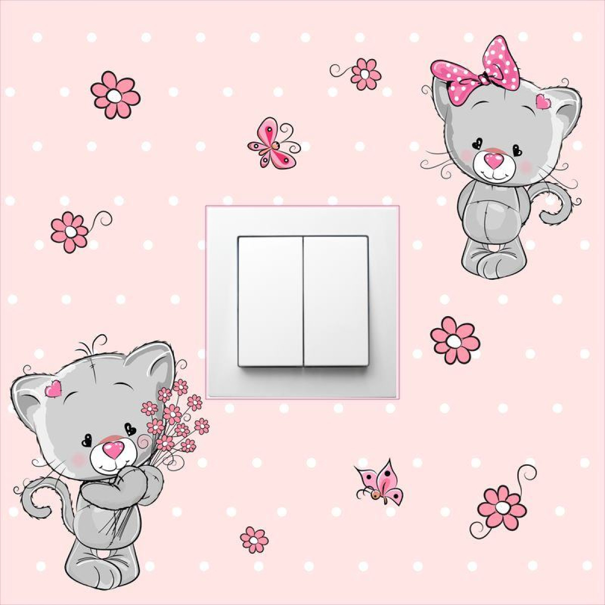 Villanykapcsoló falmatrica cicás, virágos, pink matrica, lány