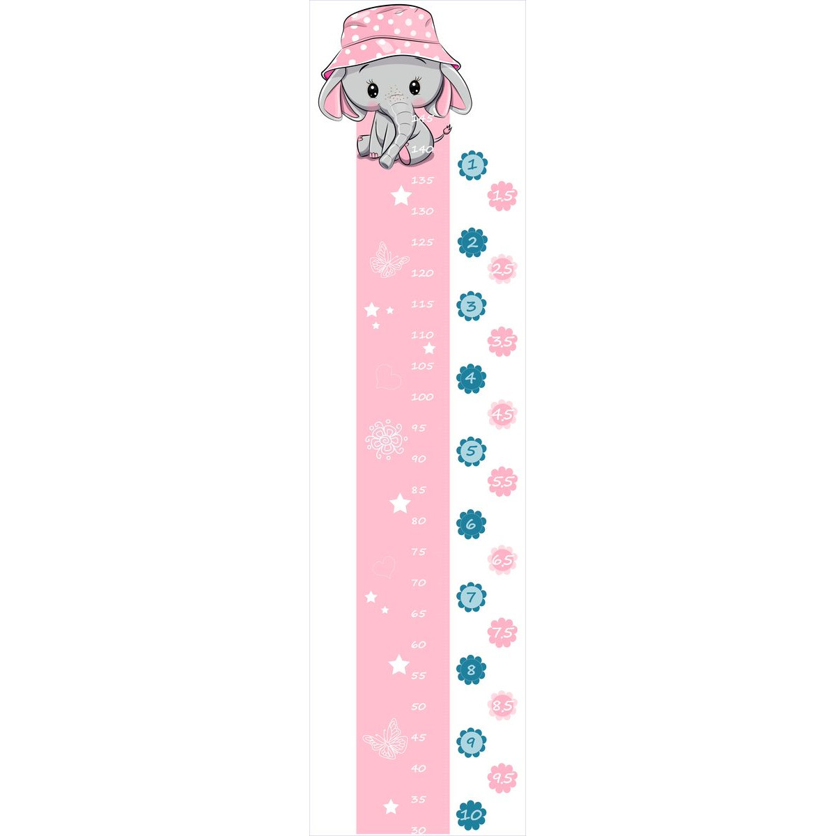 Lány elefánt rózsaszín sapkában öntapadós magasságmérős falmatrica