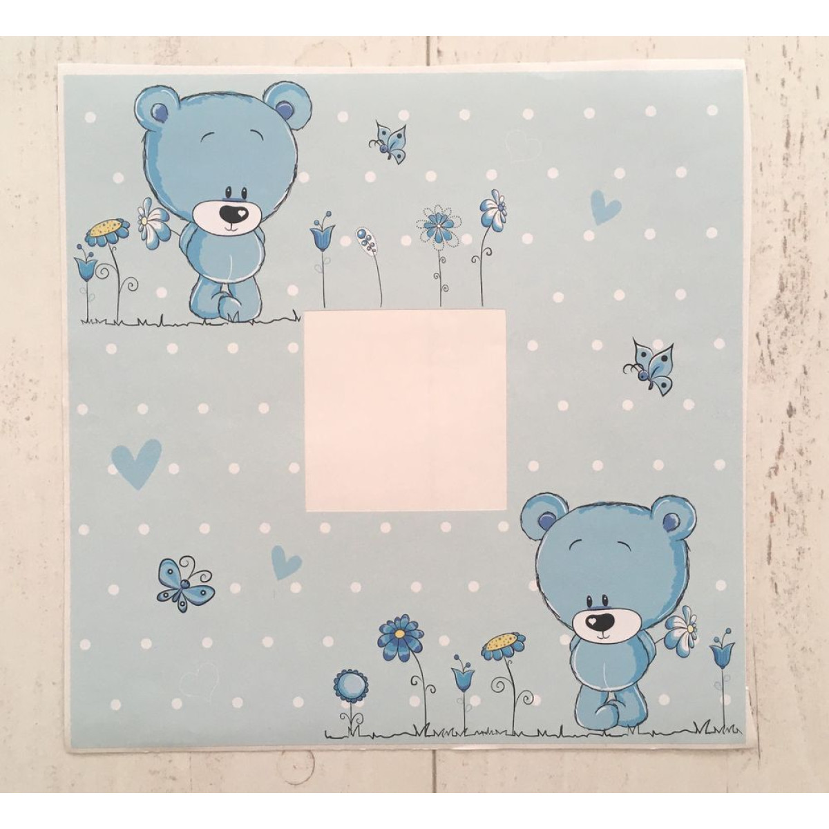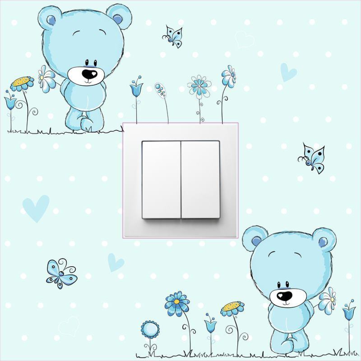 Világoskék macis kisfiú villanykapcsoló falmatrica, kapcsoló körüli matrica